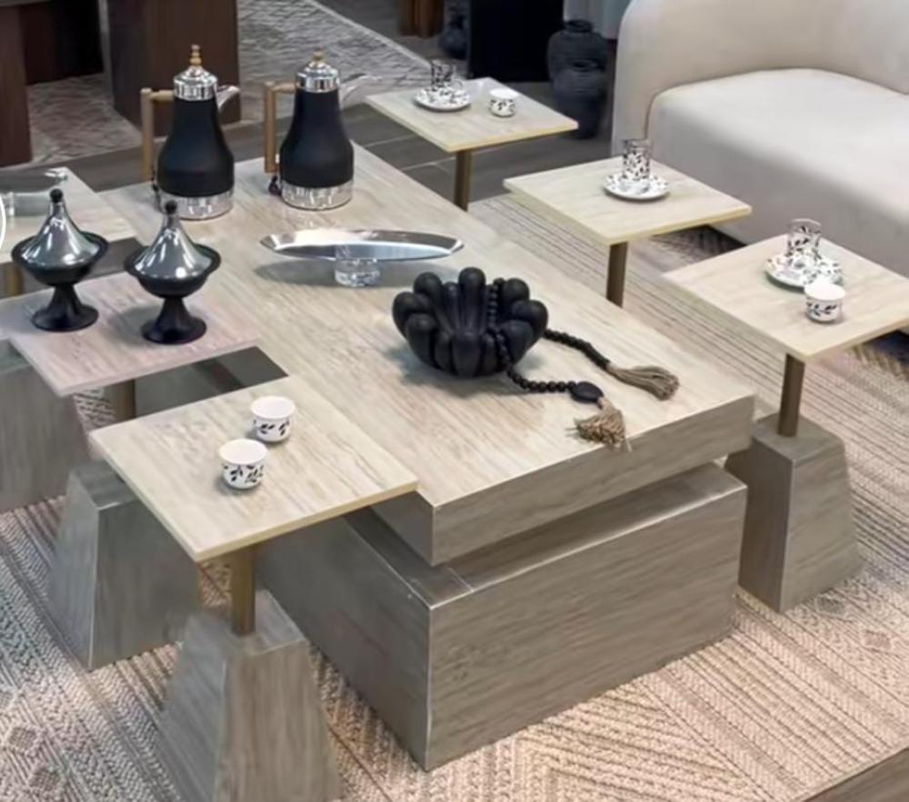 طاولة بديل الرخام مع 6 طاولات خدمة – لمسة راقية وعملية