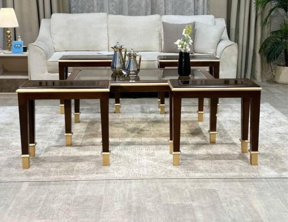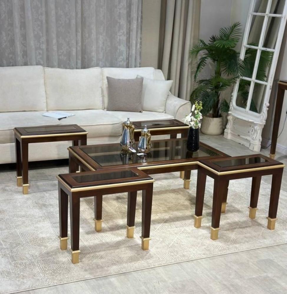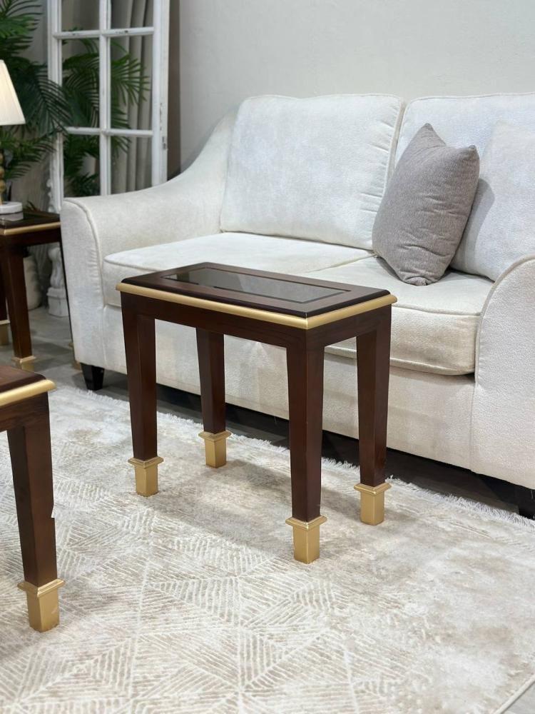 طقم طاولات ضيافة خشب بني بسطح زجاجي شفاف – فخامة تنطق بذوقك!